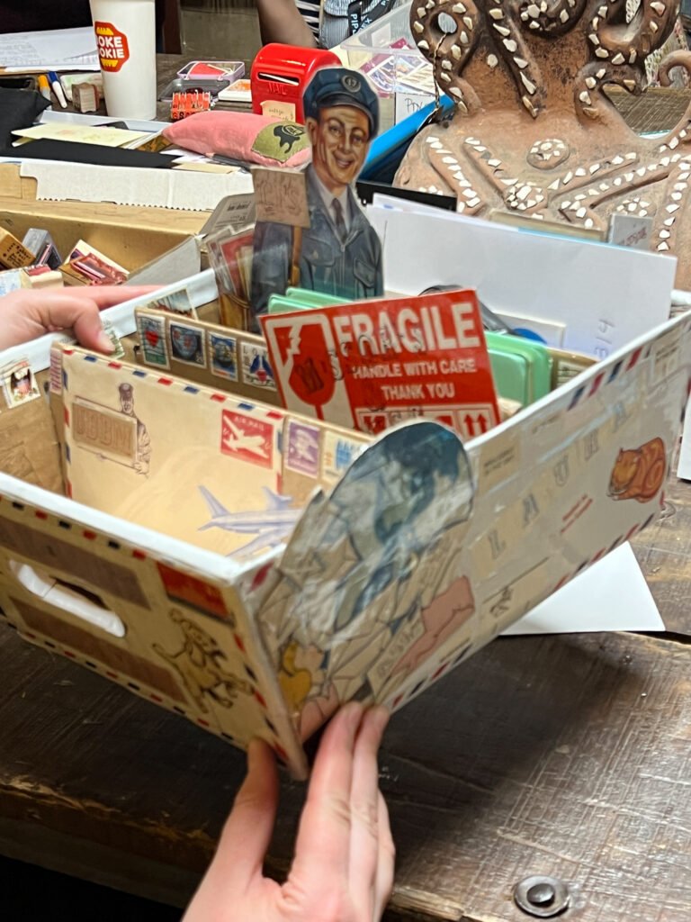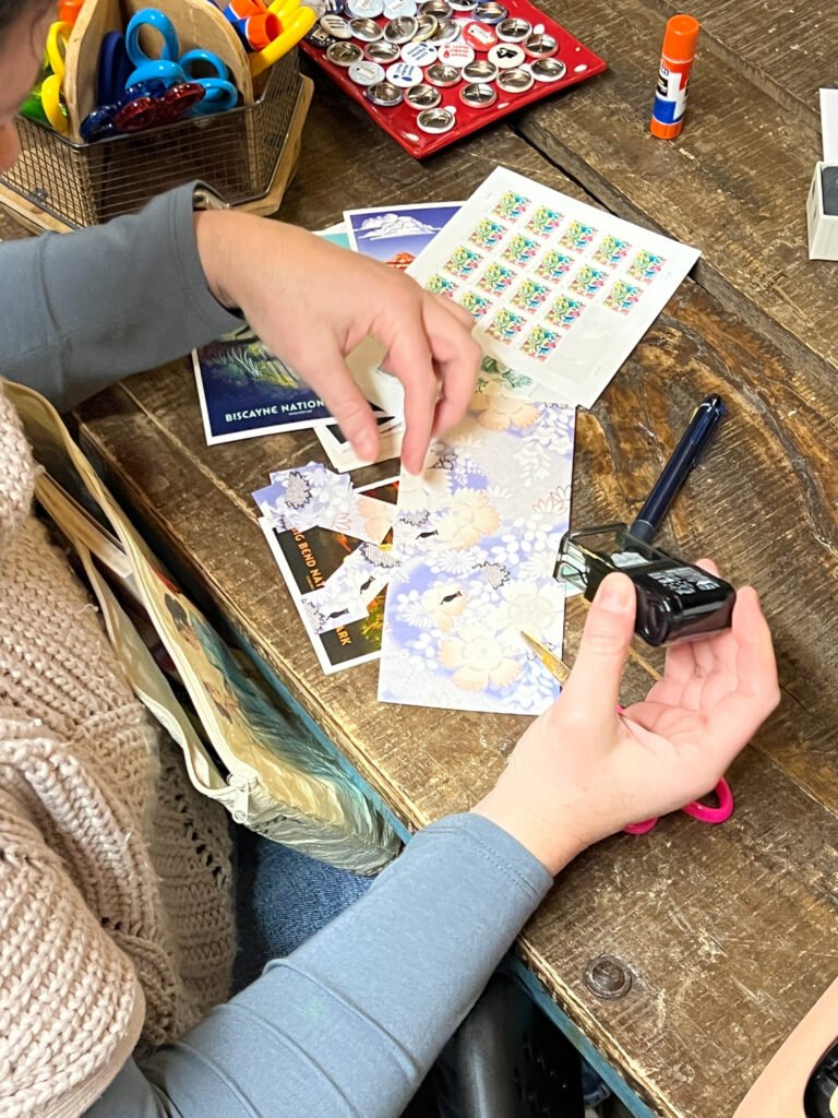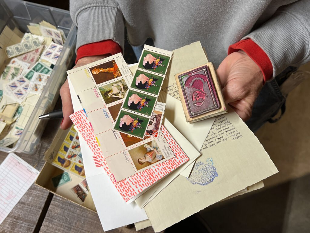 Need time to catch up with your correspondence? This is that time! We have letter writing supplies, a box of rubber stamps, and postage to spark your creativity.
